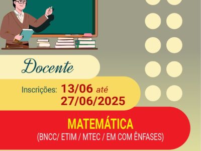 EDITAL DE ABERTURA DE INSCRIÇÕES PROCESSO SELETIVO SIMPLIFICADO PARA PROFESSOR DE ENSINO MÉDIO E TÉCNICO ESCOLA TÉCNICA ESTADUAL JOSÉ ROCHA MENDES – SÃO PAULO EDITAL Nº 076/21/2025 – PROCESSO Nº 136.00131282/2025–35COMPONENTE CURRICULAR (HABILITAÇÃO): 75 – […]